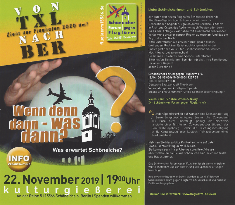 Wie jedes Jahr haben wir, vom Schöneicher Forum gegen Fluglärm e.V. wieder eine Veranstaltung organisiert, zu der wir Alle herzlich einladen möchten.